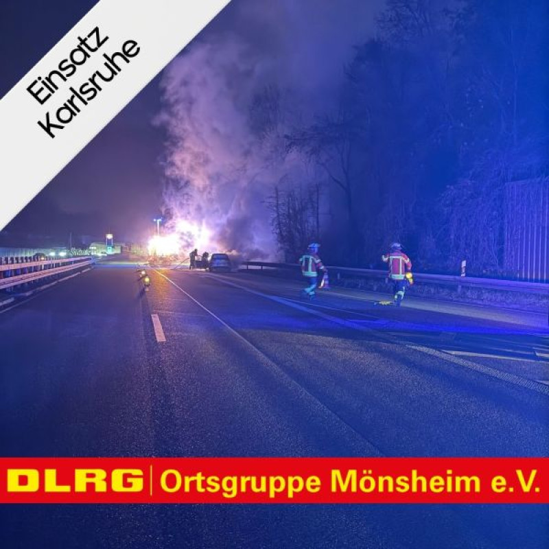 Auf der Heimfahrt von einem Lehrgang in der DLRG Zentrale Baden fing ein Fahrzeug auf der Südtangente vor uns an zu brennen. Wir sicherten die Strecke bis zum Eintreffen der Feuerwehr ab und betreuten den zum Glück unverletzten Fahrer.