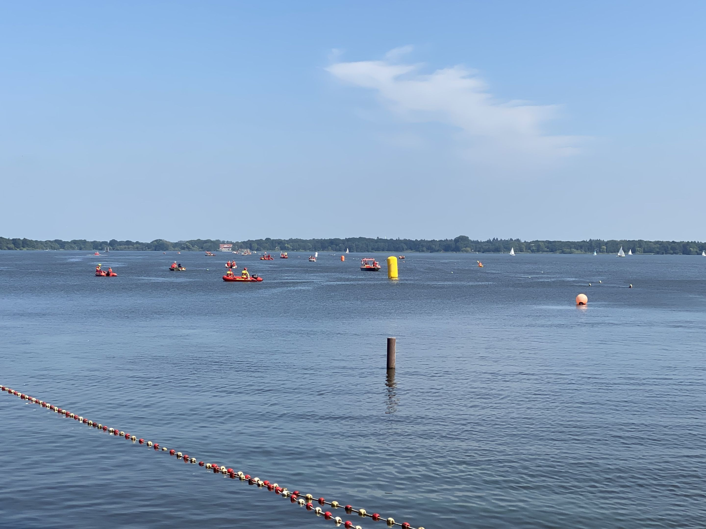Absicherung auf dem Wasser mit Motorrettungsbooten und Kajaks,