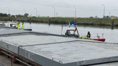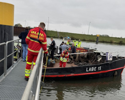 Oberhalb der Schleuse drohte ein Binnenschiff zu sinken. Gemeldet wurde ein Wassereinbruch im vorderen Geräteraum des Schiffes.