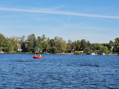 Die DLRG wurde vom Veranstalter mit der Absicherung von zwei Schwimmveranstaltungen an diesem Wochenende beauftragt. Am Samstag fand der sogenannte 1. Tegel Swim statt. Bei diesem Wettkampf wurde "nur" geschwommen. Auf 500 m, 1.500m, 3.000m oder 4.500m konnte man sich mit anderen Sportlern messen. Am Sonntag kamen zum Schwimmen dann auch noch mehrere Laufstrecken dazu. Es gab drei verschiedene Distanzen: