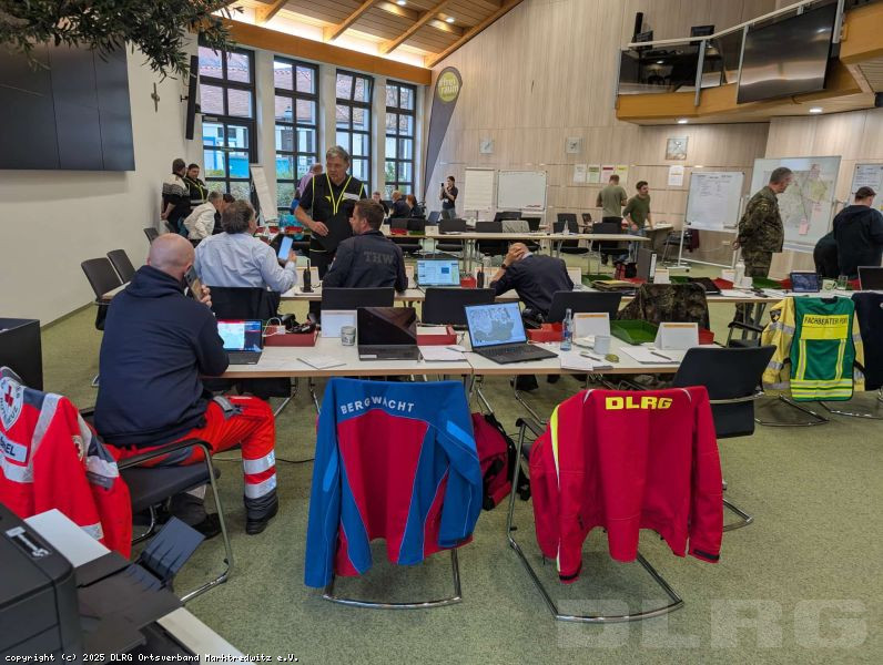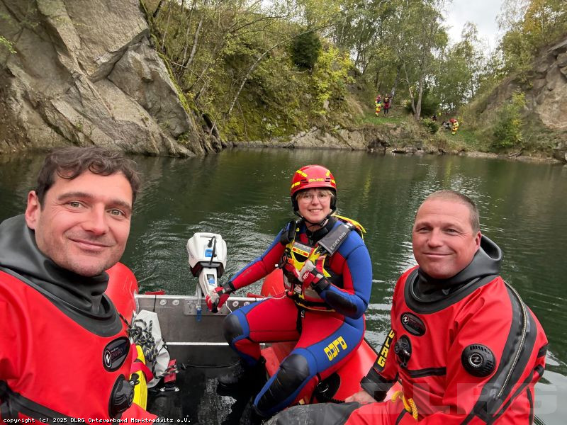 Die DLRG Gliederungen des Landkreises Wunsiedel - Marktredwitz, Selb, Weißenstadt und Wunsiedel - und die Wasserwacht Selb haben am 27.09.2025 bei der grenzüberschreitenden Katastrophenschutzübung im Bereich Selb teilgenommen. Die Aufgaben der Wasserrettungseinheiten waren sehr vielfältig. So waren DLRG-Vertreter in der FüGK (Führungs Gruppe Katastrophenschutz) im Landratsamt Wunsiedel und in der ÖEL (Örtlichen Einsatz Leitung) als Fachberater tätig. Außerdem wurden die Wasserentnahmen auf der Pendelverkehr-Strecke für die Feuerwehren sichergestellt. Auch die Wasserentnahme per Hubschrauber aus einem Steinbruch wurde mittels Tauchtrupp abgesichert. Diese wurden durch den Einsatzleiter Wasserrettung koordiniert. Weiterhin waren die Wasserrettungskräfte im verteilen der Verpflegung eingesetzt und um die Presse und Politiker mittels Shuttle ins Übungsgebiet zu fahren. Spontan unterstützten die Wasserretter auch noch bei einer Vermisstensuche im Rahmen der Übung die Bergwacht. Für eine mögliche Übungs-Evakuierung waren weiterhin schon Wasserrettungsfahrzeuge mit Personal angefragt. Die Übung verlief gut und ohne Zwischenfälle. Die Zusammenarbeit mit allen Beteiligten war gut und es konnte viel gelernt werden.