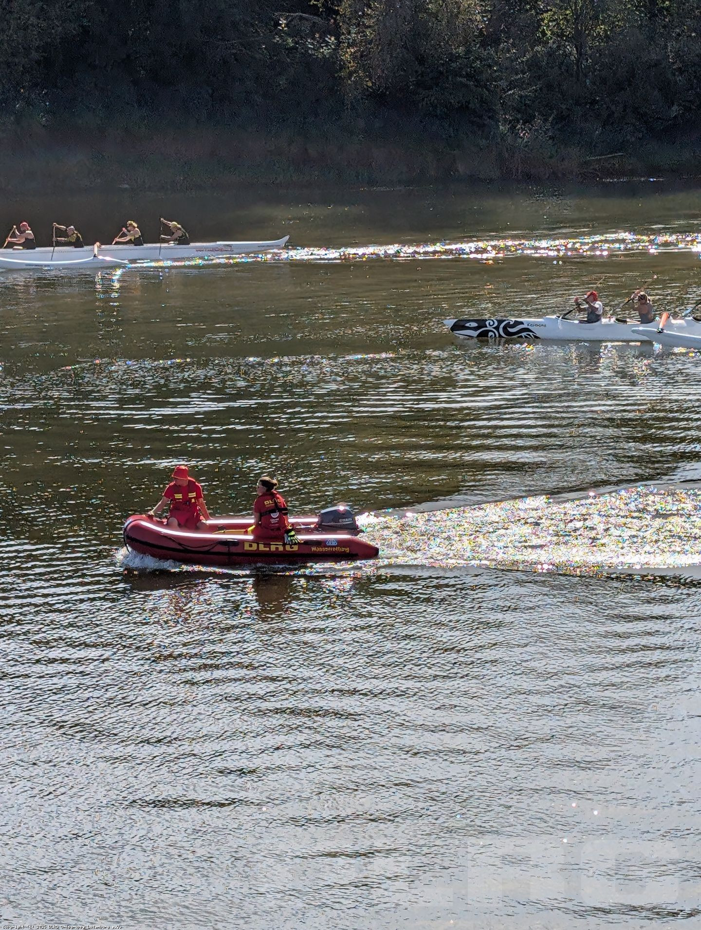 Wir überwachten die Va'a-Boote mit je sechs Sitzen mit unseren Rettungsbooten und eine Streife von uns folgte dem 15 Kilometer langen Rennen an Land.