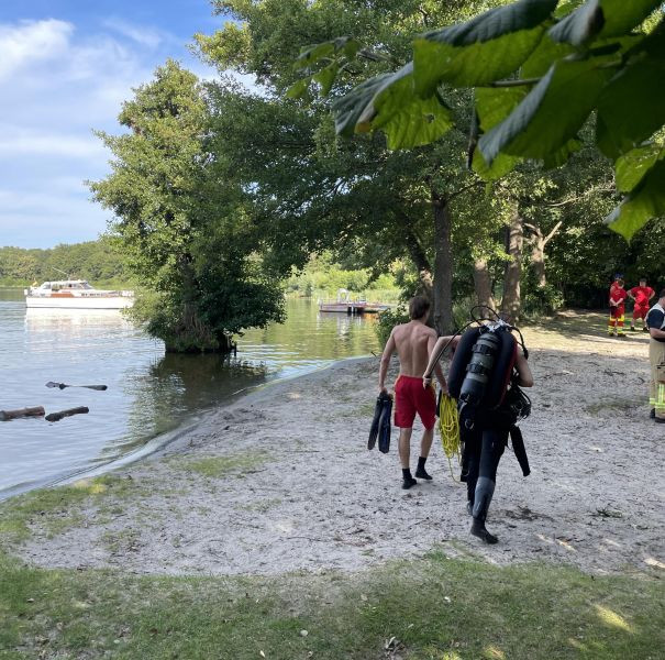 Innerhalb kürzester Zeit waren zwei Rettungsboote sowie Einsatztaucher der DLRG vor Ort. Gemeinsam mit den Einsatztauchern der Berliner Feuerwehr wurde die Suche nach einer vermissten Person unter Wasser aufgenommen.
