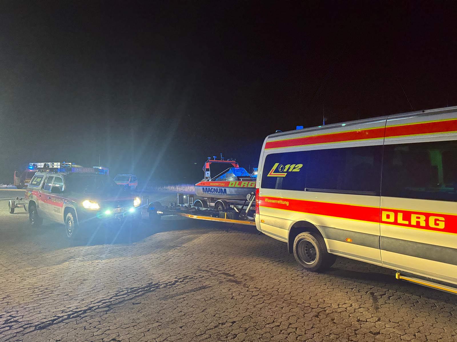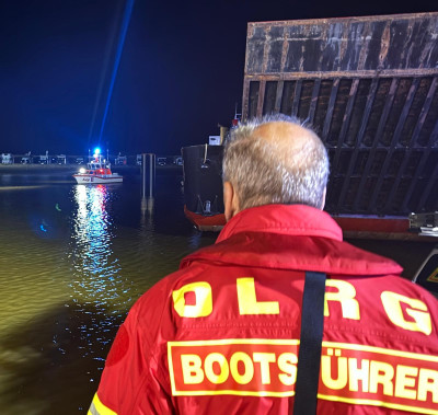 Nach dem Ausrücken unserer Einsatzkräfte wurden IRB und MRB im Hafen von Harlesiel zu Wasser gelassen. Die IRB-Besatzung entdeckte kurze Zeit später Leuchtsignale (vermutlich von einer Handylampe) und fuhr die Position an. Etwa einen Kilometer östlich der Fahrrinne des Fahrwassers Harlesiel konnte der Mann schließlich gefunden und unversehrt an Bord genommen werden.