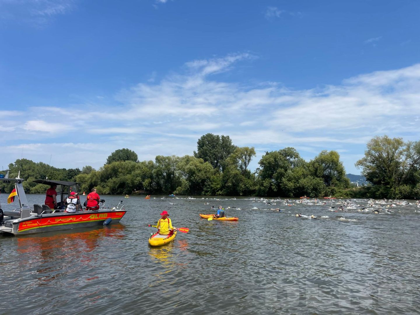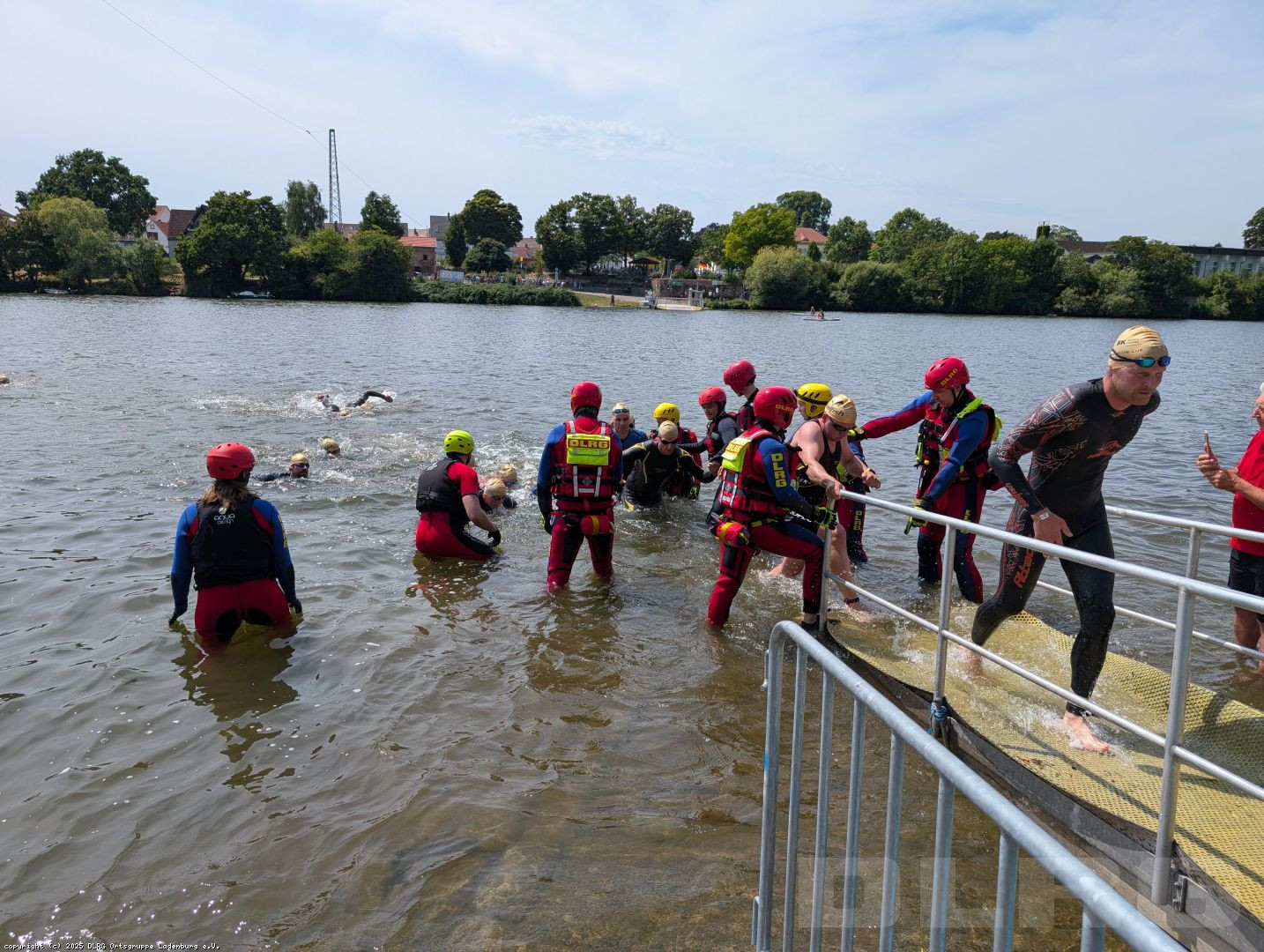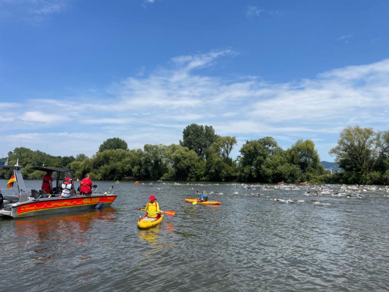 Um im Notfall schnell eingreifen zu können waren mit mit 6 MRBs, 4 Rettungsbrettern, 2 Tauchtrupps, 1 Wasserortungshund und 9 Strömungsrettern vor Ort. Bis auf die Aufnahme einer erschöpften person blieb es für uns ruhig und wir begleiteten die Athleten, bis sie wieder festen Boden unter den Füßen hatten. Außerdem standen weitere Kräfte für Notfalleinsätze in der Region bereit.