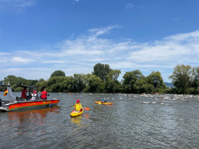 Auch in diesem Jahr sicherten wir die Schwimmstrecke des Römermans im und auf dem Neckar ab.