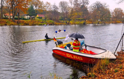 Zum Ende der Wasserrettungssaison rückten noch einmal vier Motorrettungsboote und zwei Einsatzfahrzeuge der DLRG Berlin aus, um die Herbst-Langstreckenregatta 2025 des Landesruderverbandes Berlin auf dem Hohenzollernkanal abzusichern. Für 340 junge Ruderinnen und Ruderer bot sich damit die letzte Gelegenheit, wichtige Punkte in der Wettkampfsaison zu sammeln.