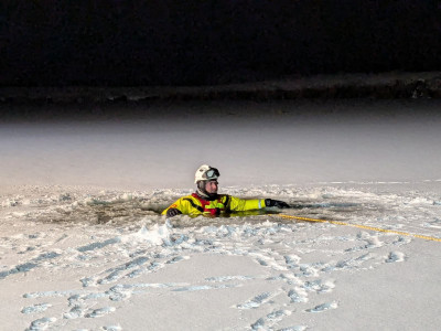 Am 23.Februar 2026 wurde die SEG Wasserrettung des Landkreises Lüneburg um 10:15 Uhr durch die Kooperative Leitstelle Lüneburg auf Anforderung der Leitstelle Uelzen in den Nachbarlandkreis alarmiert. Dort kam es zu einer unklaren Lage nachdem PKW-Spuren auf einer Eisfläche sowie ein großes Loch im Eis entdeckt worden. Da vom Schlimmsten ausgegangen werden musste, wurden diverse Kräfte alarmiert. Nach Rücksprache mit Ortskundigen stellte sich heraus, dass die Wassertiefe an der betreffenden Stelle nur ca. einen Meter beträgt und somit kein PKW im Wasser sein kann. Die Leitstelle Uelzen entließ mit dieser Kenntnis die alarmierten Kräfte aus dem Landkreis Lüneburg aus dem Einsatz und unsere Einsatzkräfte konnten auf Anfahrt abbrechen. Im Landkreis Uelzen gibt es keine eigene SEG-Wasserrettung, sodass im Bedarfsfall unter anderem unsere Kräfte alarmiert werden.