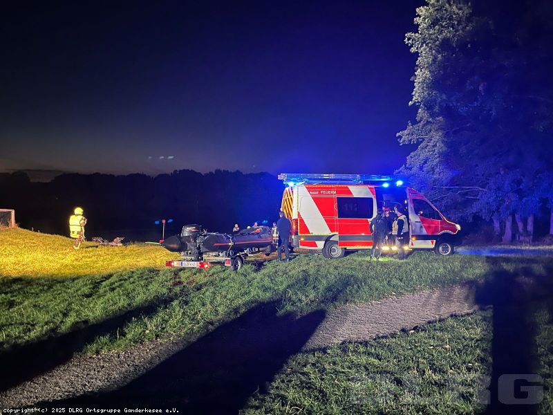 Suche der zweiten vermissten Person durch Einsatz von Tauchern und Boot mit Sonar