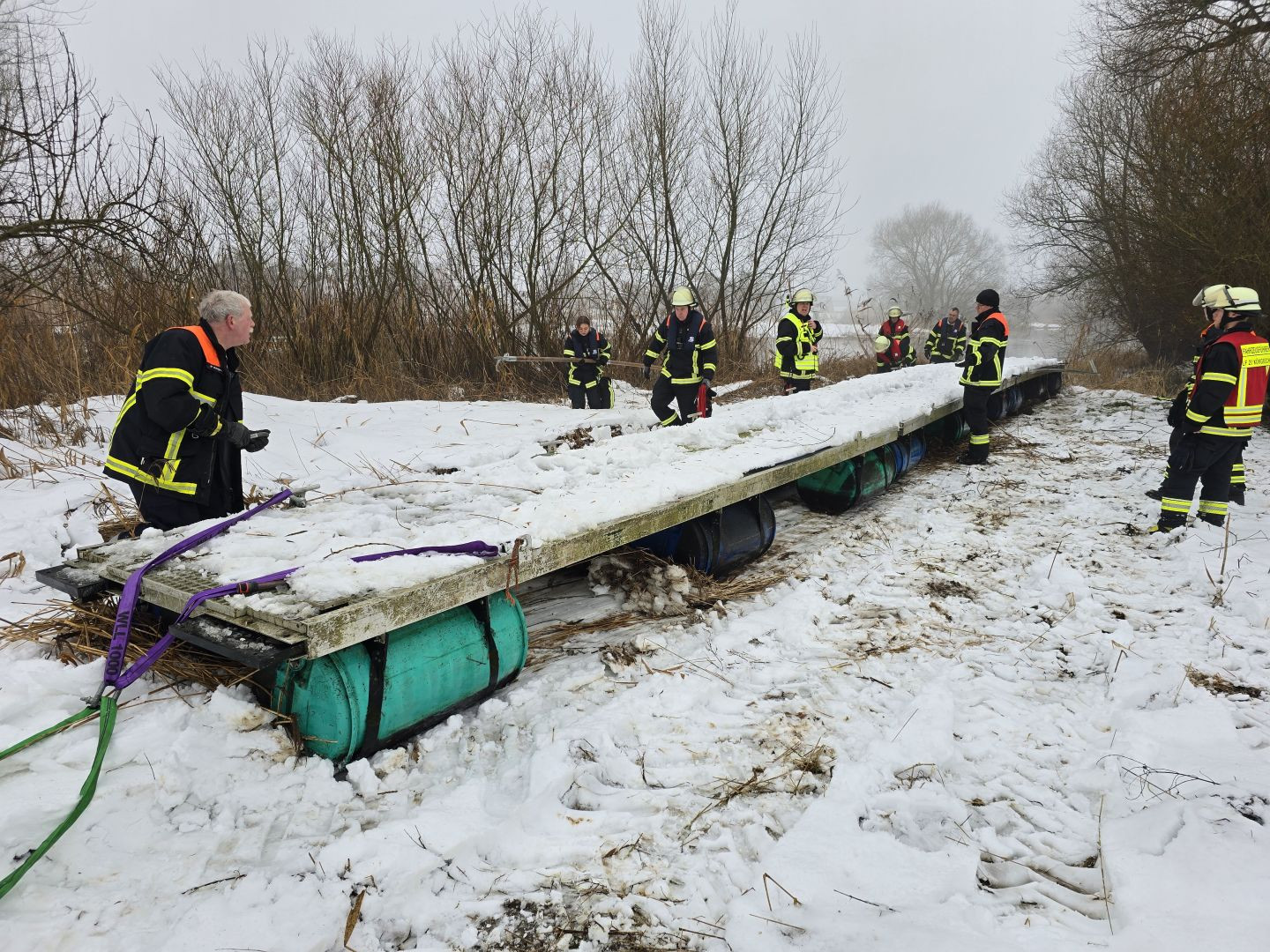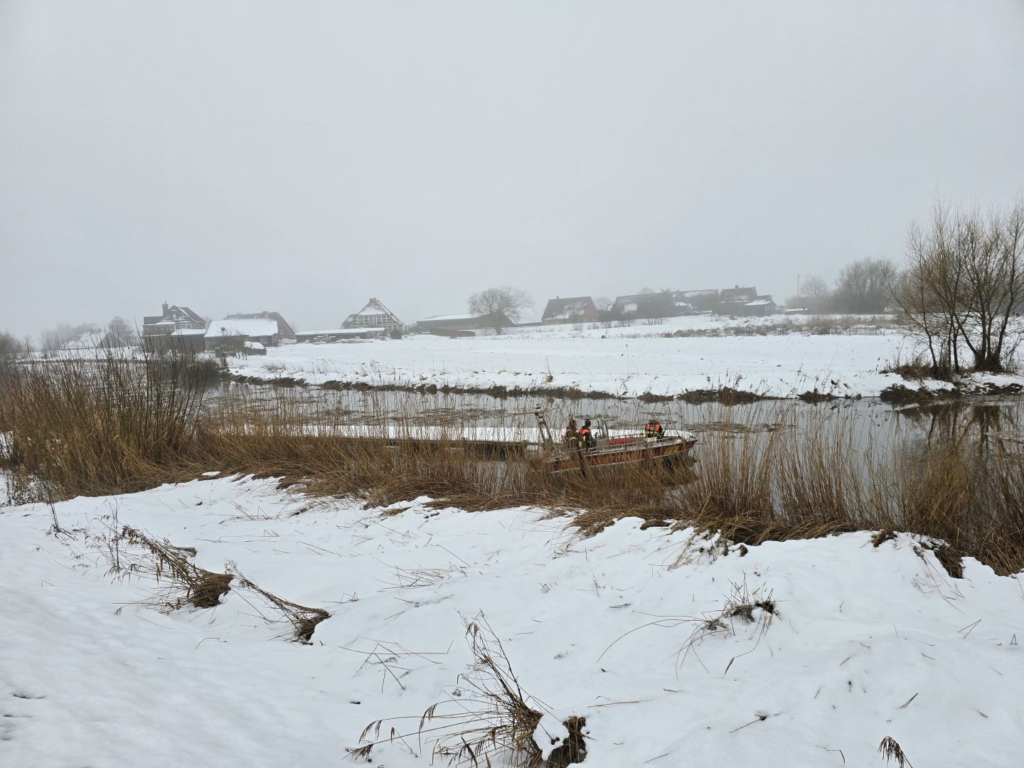 Mit den beiden eingesetzten Rettungsbooten der Feuerwehr Estebrügge und der DLRG Buxtehude konnte der Schlengel schließlich gesichtert und in einen Auslauf eines Schöpfwerks zwischen Estebrügge und Buxtehude geschleppt werden.