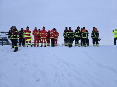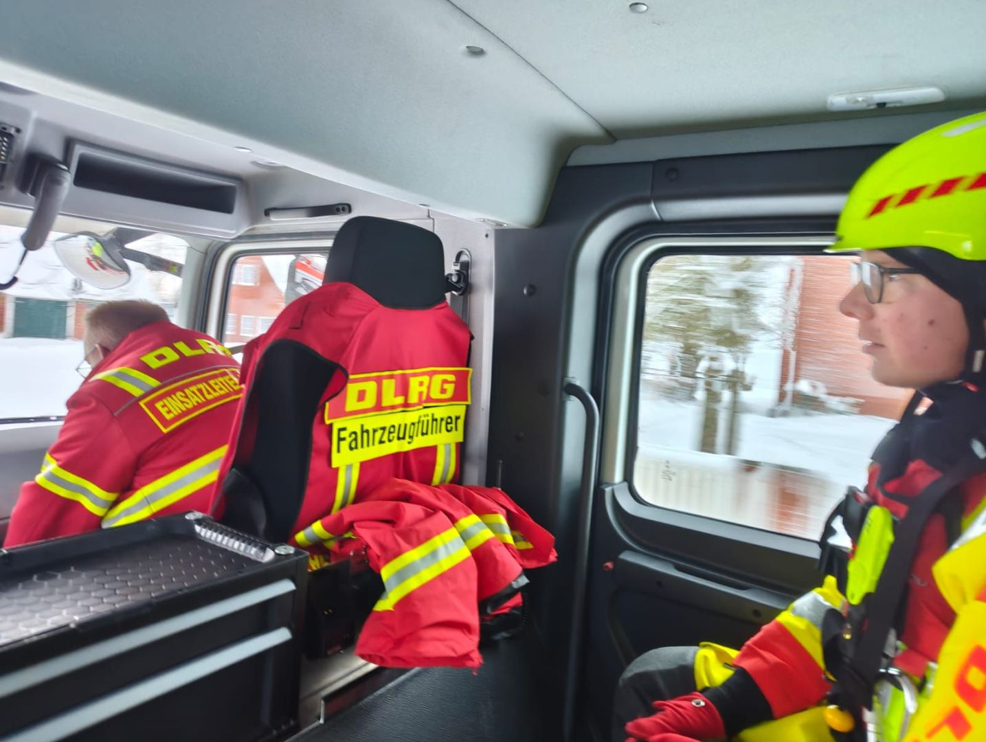 Vor Ort wurde bei der Erkundung durch die ersten Helferinnen und Helfer dann festgestellt, dass sich der Skipper noch an Bord seines in Schräglage liegenden 2 Masters befindet.