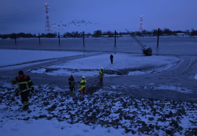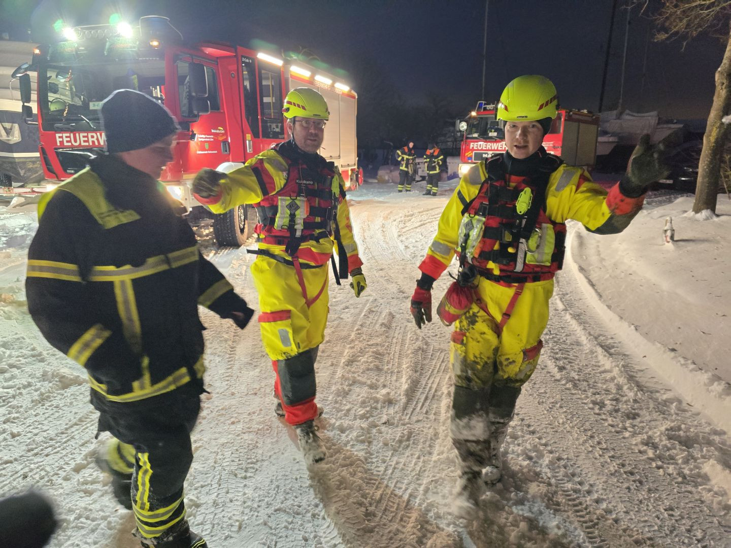 Strömungsretter begaben sich in ihren Spezialanzügen zum Havaristen und nahmen mit dem 46-jährigen Eigner auf. Dieser war auf der Fahrt von Hamburg nach Finkenwerder durch den starken Sturm von seiner Route abgekommen und schließlich in der Lühesander Nebenelbe gestrandet.
