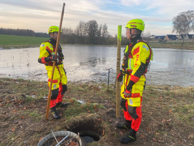 Am Samstag den 22.11. waren wir auf Anforderung des Ordnungsamtes Horneburg im Einsatz am Regenrückhaltebecken im Blumental. Der Abfluss war verstopft, sodass das Becken nach und nach vollgelaufen ist.