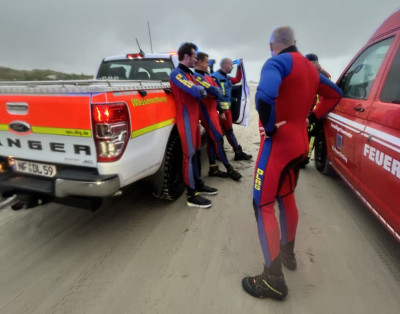 Bei der Ankunft von Feuerwehr und DLRG hatte es der Kiter gerade wieder geschafft, sich eigenständig wieder zurück an den Strand zu begeben.