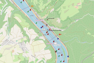 Person in fließendem Gewässer bei Rheinkilometer 543