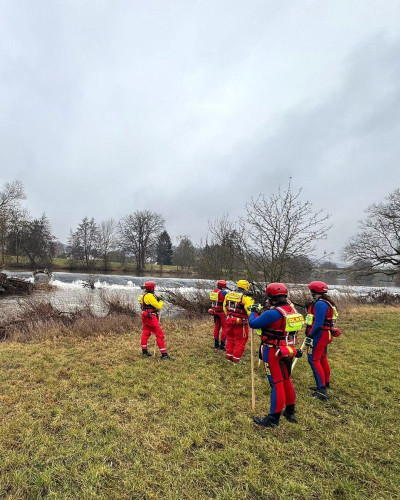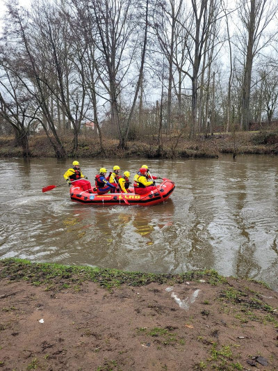 Wir unterstützten den Einsatz mit drei Strömungsrettertrupps sowie dem Führungsdienst zur Koordinierung der Strömungsrettung in drei Einsatzabschnitten. Gemeinsam mit einem Strömungsrettertrupp aus Bad Kreuznach wurde der Verlauf der Nahe auf einer Strecke von rund 11 Flusskilometern abgesucht. Die Suche erfolgte sowohl wasserseitig mit einem RAFT (Schlauchboot für Wildwassereinsätze und starke Strömung) als auch landseitig durch Strömungsretter zu Fuß entlang der Uferbereiche. Neben der DLRG waren Einsatzkräfte von Feuerwehr, Polizei und Rettungsdienst in die Suche eingebunden. Zusätzlich kamen mehrere Drohnen mit Wärmebildkamera zum Einsatz.