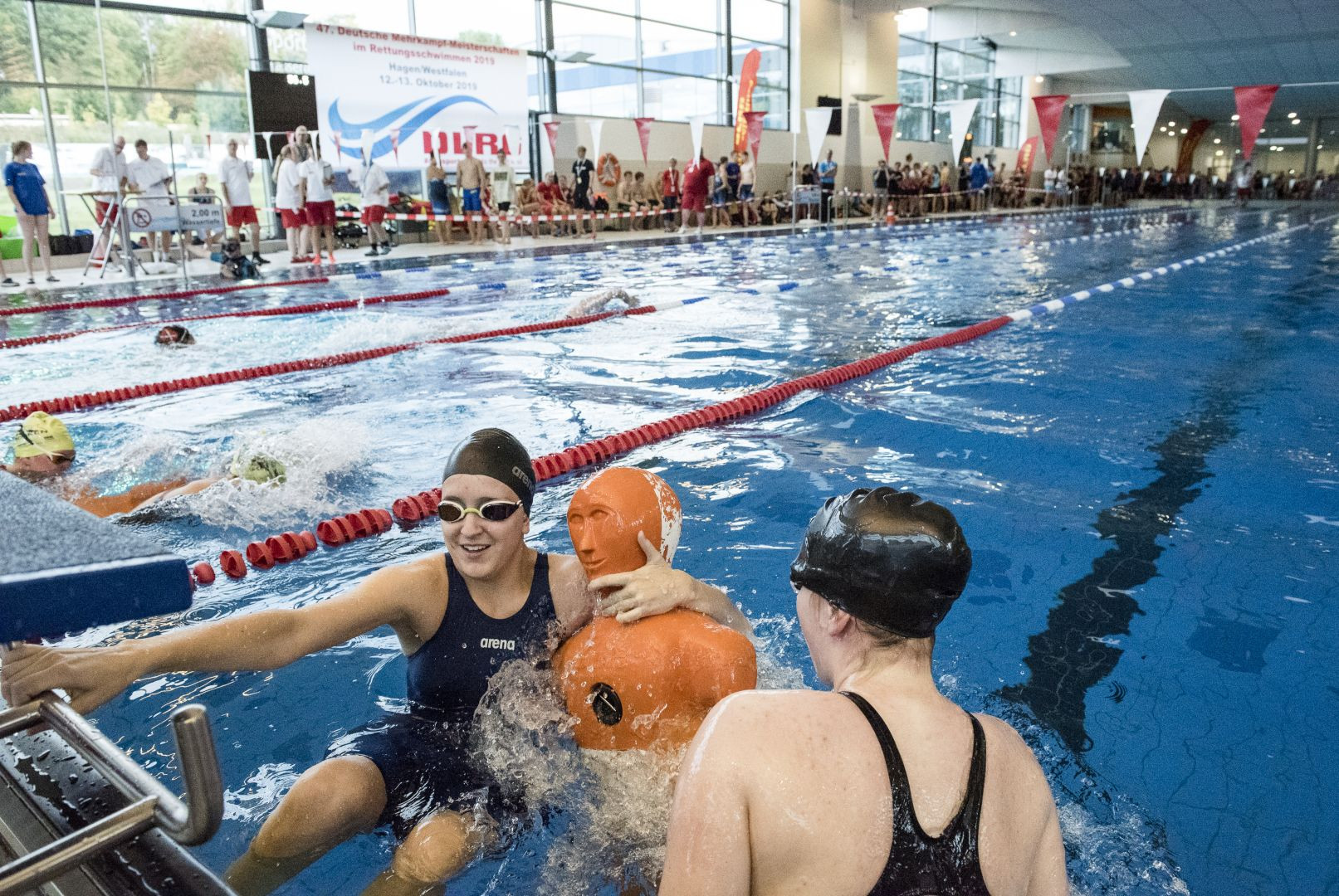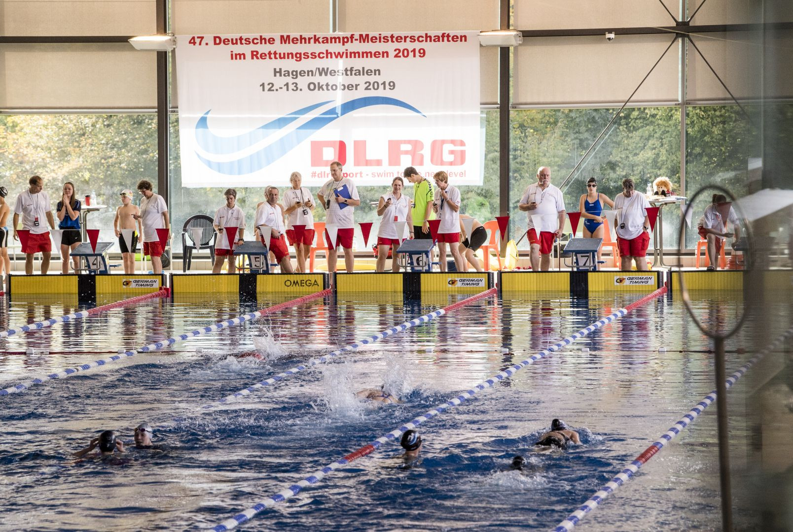 Auf dieser Seite finden Sie die Bilder von der Deutschen Mehrkampf-Meisterschaft 2019 im Rettungsschwimmen im Westfalenbad in Hagen.