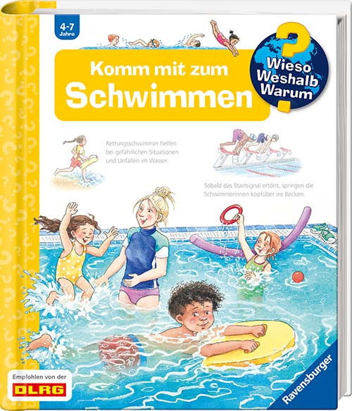 Kinder lieben Schwimmen und für sie ist das ganze Jahr Badesaison – egal ob im Hallenbad, im Freibad, im Badesee oder am Meer. Doch Sicherheit sollte an erster Stelle stehen. Warum kann Baden in unbekannten Gewässern gefährlich sein? Was muss am Meer beachtet werden? Was wird eigentlich im Schwimmkurs geübt? Diese und viele andere Fragen beantwortet das neue Kindersachbuch „Komm mit zum Schwimmen“ aus der beliebten Wissensreihe „Wieso? Weshalb? Warum?“ von Ravensburger. Das Besondere: Es wurde in enger Abstimmung mit Ausbildungsexperten der Deutschen Lebens-Rettungs-Gesellschaft e.V. (DLRG) konzipiert, entwickelt und umgesetzt. Auf insgesamt 16 bunt illustrierten Seiten laden zahlreiche Klappen zum Entdecken ein. Sie veranschaulichen beispielsweise Schwimmbewegungen oder liefern ergänzende Informationen. So wird die Neugierde und Freude auf den ersten Schwimmkurs geweckt. Das Sachbuch für Kinder von vier bis sieben Jahren enthält auch die zehn wichtigsten Baderegeln, die alle im und am Wasser kennen und beachten sollten.